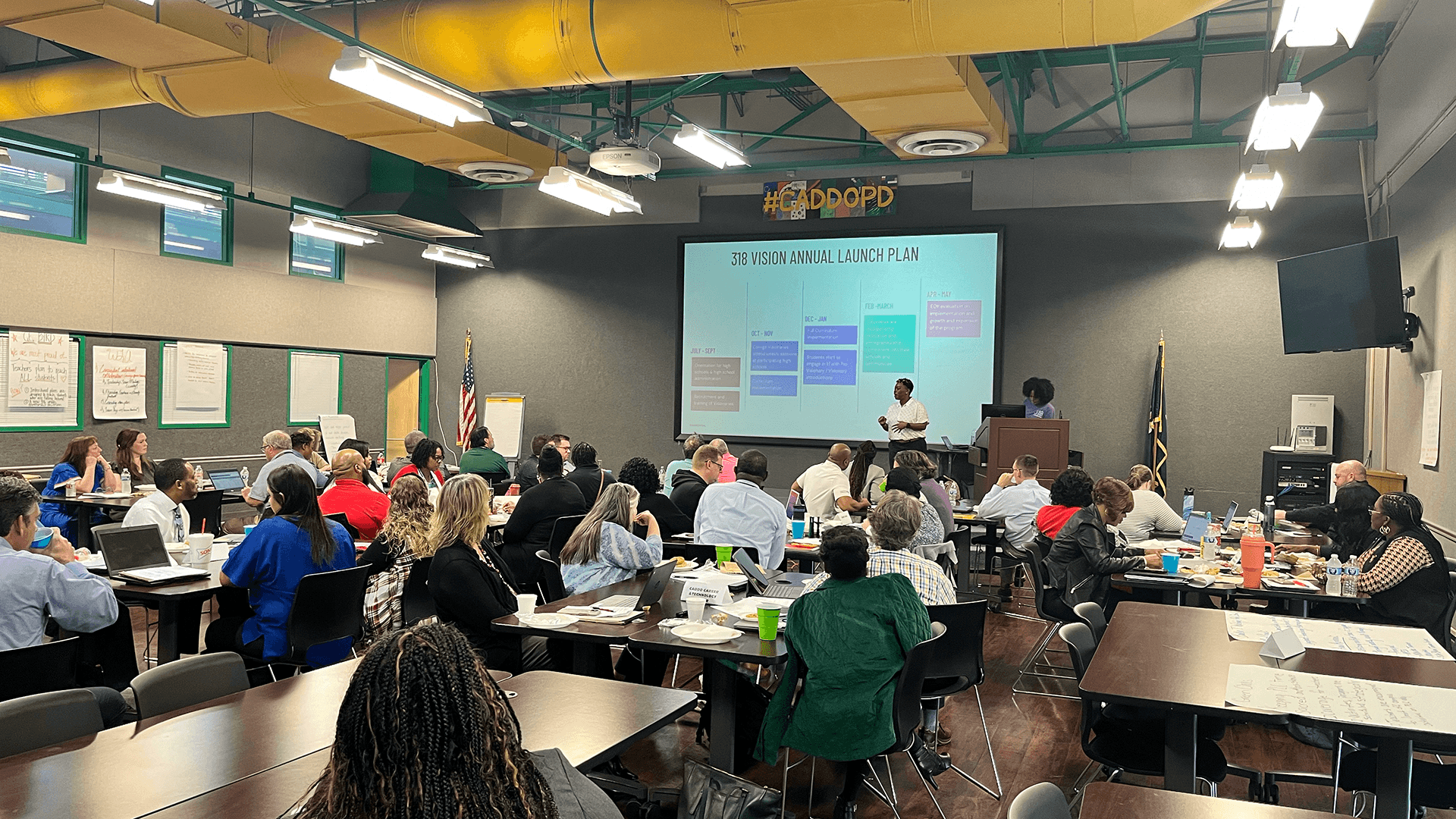 (Kristin Kelly presenting to local area principals, staff, and district leaders at the Caddo Parish School Board in Shreveport, LA)